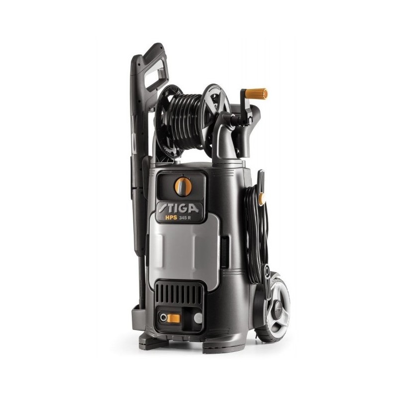 Le STIGA HPS 345 R est un nettoyeur haute pression à eau froide conçu pour nettoyer facilement et confortablement les surfaces moyennes. Ce nettoyeur haute pression est alimenté par un moteur électrique à induction de 2 100 W qui fonctionne à une pression maximale de 145 bars et à un débit de 450 l / h. Le tuyau à haute pression fourni mesure 9 mètres de long. Il est léger, très stable et facile à déplacer avec deux roues revêtues de caoutchouc et une poignée télescopique avec une poignée antidérapante à prise souple. Le HPS 345 R comprend un dévidoir et un compartiment de rangement pratique pour les pièces et accessoires. La HPS 345 R est idéale pour les tâches de nettoyage moyennement difficiles sur divers objets et surfaces, y compris les appareils de jardinage, les terrasses et les marches, les vélos, les motos, les voitures, les trottoirs, les chemins, les objets en bois et les coffres à outils.