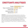 Farine de maïs, protéines de volaille déshydratées, gluten de blé*, riz, graisses animales, maïs, gluten de maïs, protéines animales hydrolysées, fibres végétales, pulpe de betterave, substances minérales (dont triphosphate pentasodique (0,35 %)), huile de poissons, huile de soja, produits de levures, pulpe de tomates séchées (source de lycopène), fructo-oligosaccharides, levures (source de mannanoligosaccharides), huile de bourrache (0,1 %), glucosamine issue de la fermentation, farine de tagète, cartilage hydrolysé (source de chondroïtine). *L.I.P. : protéine sélectionnée pour sa très haute digestibilité.