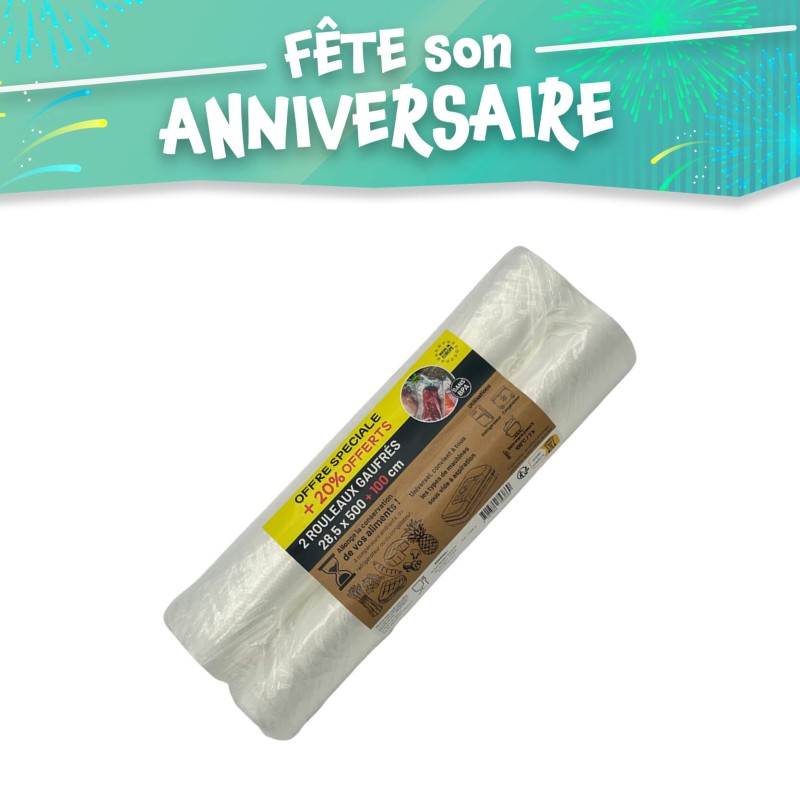 LOT DE 2 ROULEAUX SOUS VIDE GAUFRES 28.5CM X LONG 5 +1M