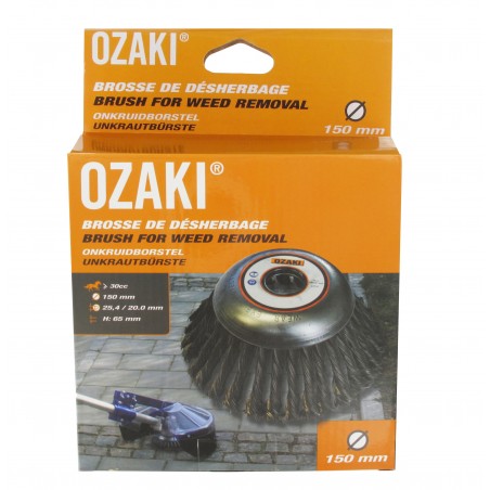Tête brosse métallique pour débroussailleuse diamètre: 150 mm et angle de 45°. A partir de 30cc. S'adapte comme une lame de coupe. Alésage : 25,4 mm et bague de réduction 20mm. Pour le nettoyage des pavés autobloquants, bordures béton, etc.