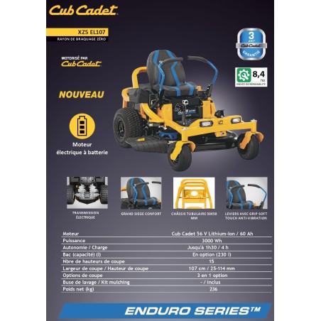 AUTOPORTEE CUB CADET BATTERIE ZTURN XZ5EL 107cm (Ultima)