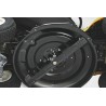 Larges pneus “spécial gazon” pour éviter de marquer le terrain lors de la tonte.