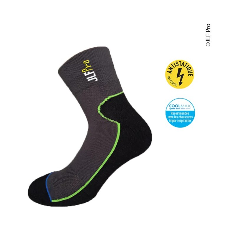 Cette chaussette pour chaussure de sécurité basse est doté d'une zone ventilée sur le dessus du pied rendant cette chaussette encore plus respirante. La chaussette fraîcheur en tige courte Coolmax a aussi été spécialement conçue pour s'adapter aux vêtements antistatiques, chaussures conductrices (ESD) ou antistatiques sans modifier les propriétés électriques de la chaussure.