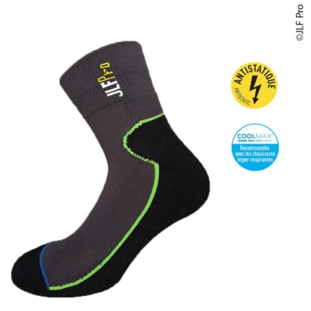 Notre incontournable chaussette "FRAICHEUR" en tige courte pour apporter confort et hygiène grâce à la fibre Coolmax® dans les chaussures de sécurité basses.
