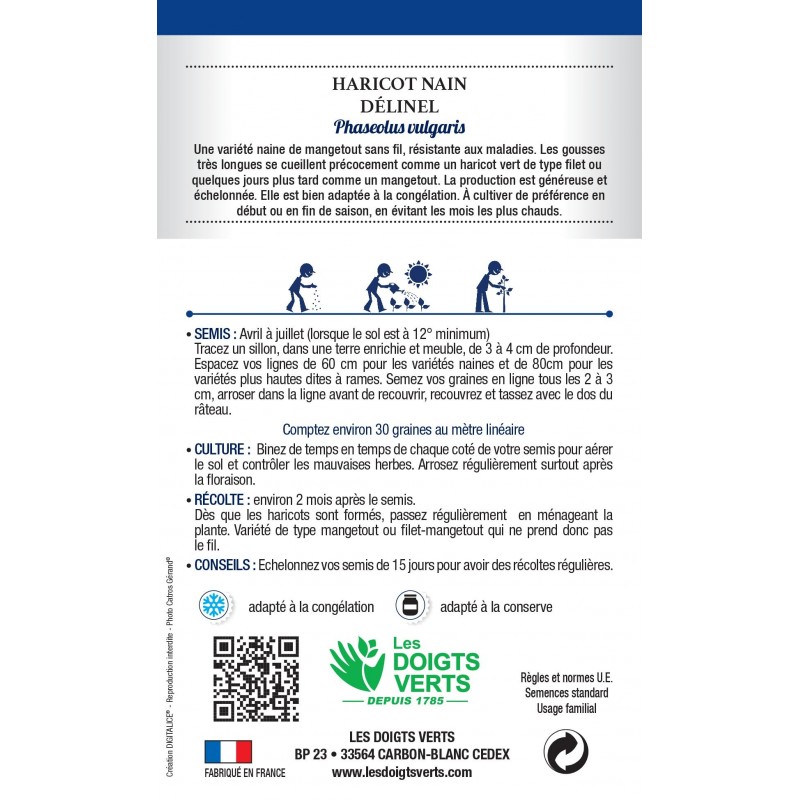 HARICOT NAIN DÉLINEL - CATÉGORIE D - LES DOIGTS VERTS