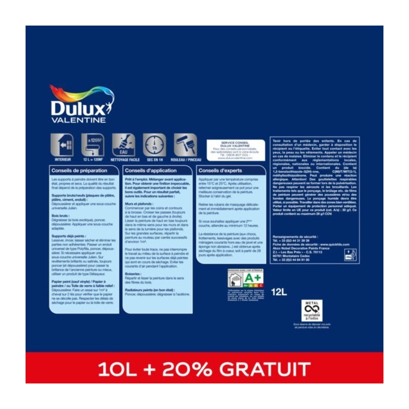 FINITION PARFAITE BLANC VELOURS 10L+20% - DULUX VALENTINE