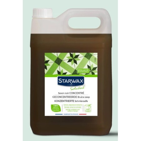 Le savon noir Starwax nettoie, nourrit, dégraisse et fait briller toutes les surfaces (sols carrelés, plastifiés ou en terre cuites, cuisinières, plaques de cuisson, fours...). Dosage : Diluer 2 cuillières à soupe de savon noir dans 5L d'eau, froide ou chaude. Utiliser pur pour éliminer les taches difficiles. Vérifier au préalable les conseils d'entretien et contre-indications du fabricant.