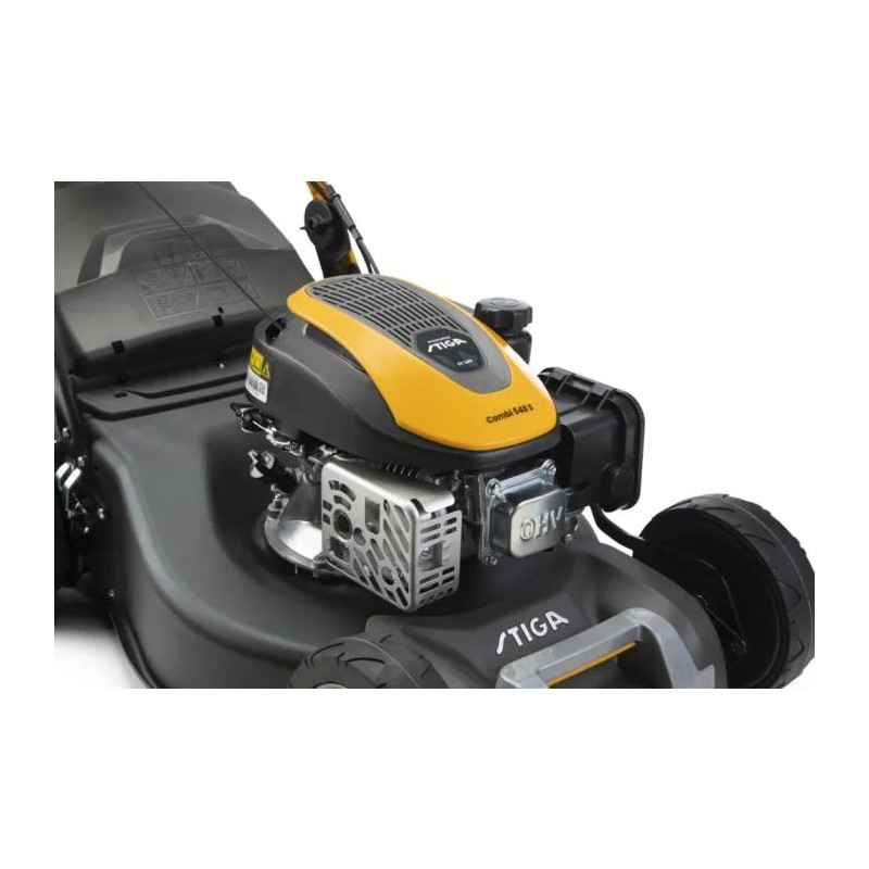 La tondeuse à gazon automotrice STIGA Combi 548 S est équipée d'un moteur à essence fiable de 139 cm3. La STIGA Combi 548 S dispose d'une largeur de coupe de 46 cm et d'un bac collecteur de 60 litres avec indicateur "sac à herbe plein". Grâce à un simple levier, tu peux régler la hauteur de coupe sur 6 positions, de 22 mm à 65 mm. Le guidon Fulcrum change complètement ton rapport à la tonte de ton gazon. Il peut être tourné jusqu'à 25° sur la gauche, pour tondre le long des haies et des murs sans se faire égratigner.