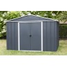 Abri de jardin métal de 4,38 m² de surface hors tout et de 3,69 m² de surface utile.