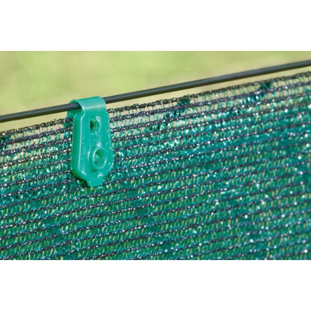 - Permet la fixation haute et basse sur fil de tension, ainsi qu'au milieu du brise-vue (2 clips en vis-à-vis).