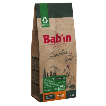 CROQUETTES SIGNATURE CHAT STÉRILISÉ SANS CÉRÉALES GRANDES RACES 6KG - BAB'IN