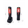 Lampe d'atelier super lumineuse: la lanterne SMD 300 Lumen 3W est une puissante lampe de travail blanche qui sert à éclairer une grande surface. Faisceau visible jusqu'à 20 mètres. Poignée antidérapante en caoutchouc. Rechargeable: la lampe intègre une batterie Li-ion rechargeable de 3,7 V 2200 mAh (type 18650); fournie avec 2 chargeurs (voiture 12V et maison 220V) et base de chargement. Autonomie: 8 heures (lumière 50%); 4 heures (lumière 100%). Crochet pivotant à 360 ° la lampe monte un crochet pivotant à 360 ° qui vous permet de suspendre la lampe n'importe où facilement. Aimant: l'arrière de la lampe monte un aimant puissant: il vous permet de le fixer sur des surfaces métalliques afin de laisser les mains libres pour effectuer d'autres travaux. Résistante à l'eau et robuste (structure en ABS), elle est confortable à utiliser. Elle peut être utilisée à l'intérieur et à l'extérieur, pour la maison, le travail, le camping, en cas d'urgence, dans la voiture, le garage, au travail (électriciens, mécaniciens, plombiers ...).