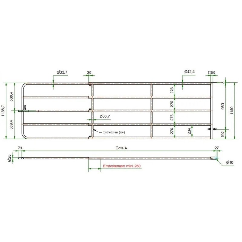 Modèle renforcé qui offre plus de rigidité et de robustesse que les modèles plus classiques de barrières herbages et garantit donc sa durée dans le temps. Modèle Europe 2/3m.