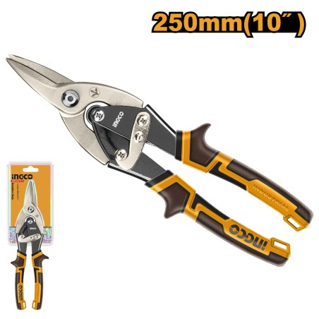 Cisaille d'aviation à poignée souple bicolore de conception unique (droite) Longueur: 250 mm (10 ") Épaisseur de coupe maximale : Acier au carbone ≤1,2 mm Acier inoxydable ≤0,7 mm Emballé par demi-double blister