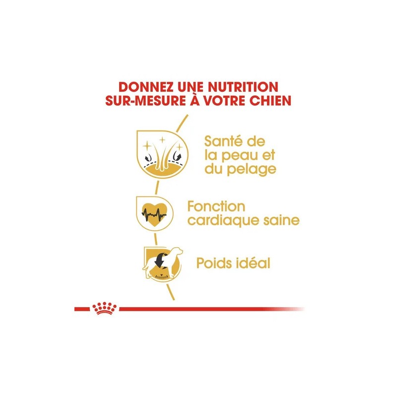 • POIDS IDÉAL : Aide à maintenir le poids de forme du Golden Retriever grâce à son apport modéré en calories