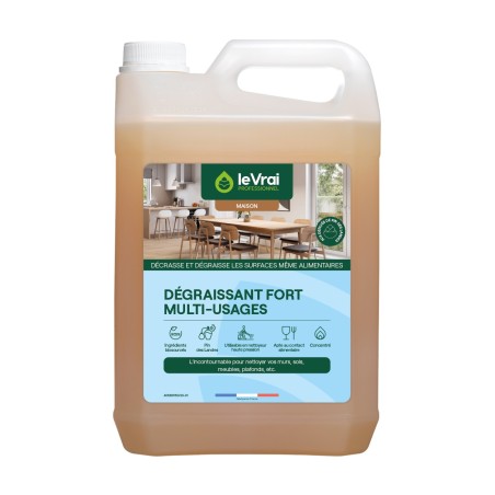 Flacon 5L de dégraissant fort tous types de surface de la marque LE VRAI PROFESSIONNEL
