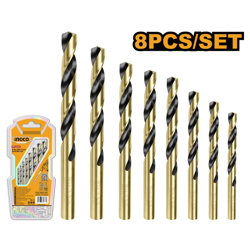 Jeu de forets hélicoïdaux à roulement HSS, 8 pièces, emballé sous double blister