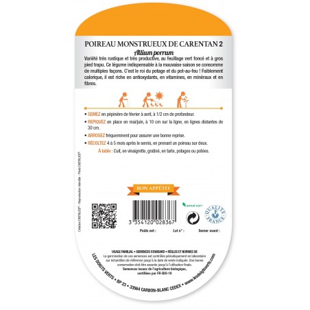Le Poireau monstrueux de Carentan est un poireau au fût assez court mais très gros, et aux feuilles vert très foncé. C’est une variété très productive, assez résistante au froid, bien adaptée à la récolte d’automne.