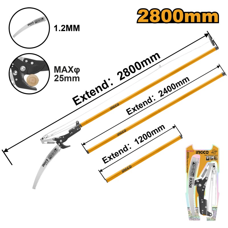 SCIE ARBORICOLE AVEC PERCHE EXTENSIBLE + SECATEUR - INGCO