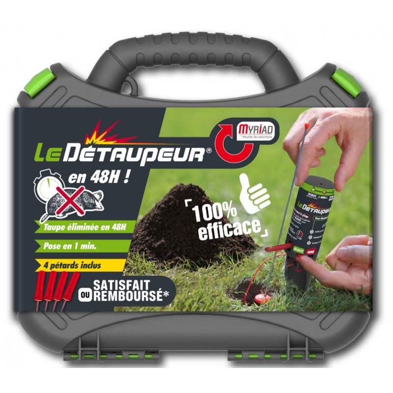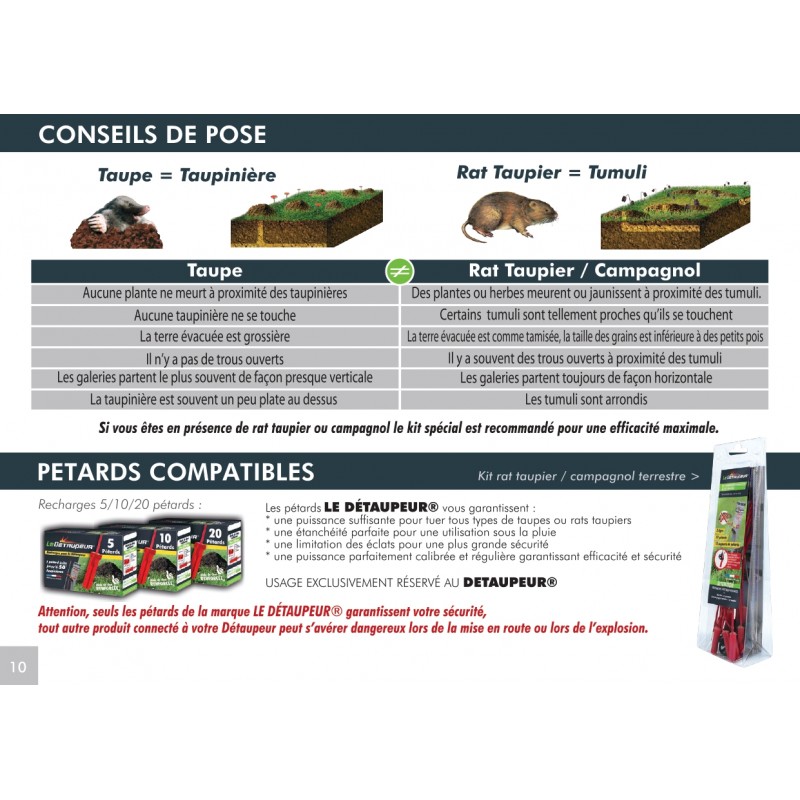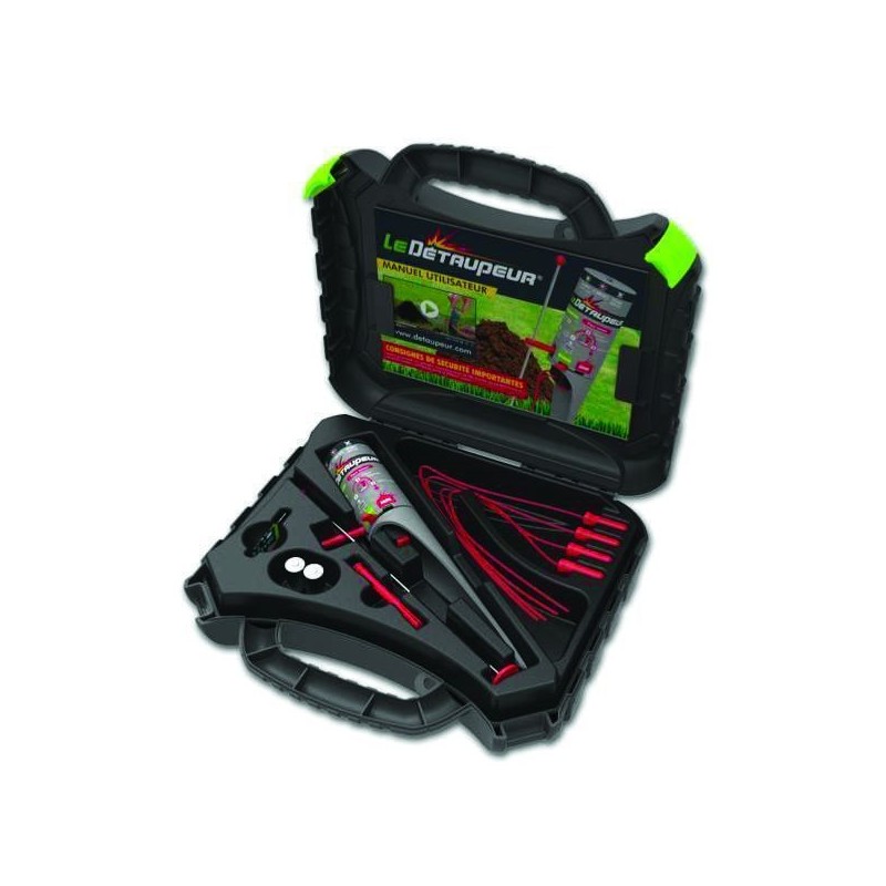 Vendu en mallette. Onde de choc renforcée : 1 pétard évite jusqu'à 50 taupinières. Facile d'utilisation.