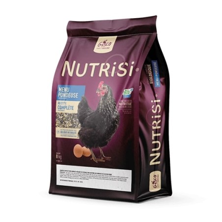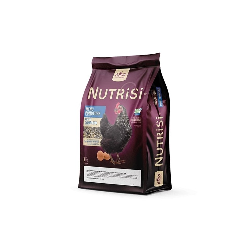 Nutrisi Menu Pondeuse est une formule complète, labellisée Bleu Blanc Cœur, riche en graines de lin pour enrichir les œufs de vos poules en oméga-3. Grâce à Nutrisi, nul besoin d’être un expert en basse-cour pour avoir de beaux et bons oeufs, des poules heureuses et bien nourries. En plus, toutes les recettes Nutrisi sont validées par des nutritionnistes.COMPOSITION : Noyau BBC (12,3 % Graines de soja, Blé, Tourteaux feed d’extraction de colza, 4,29 % Graines de lin extrudées, Tourteaux feed d’extraction de tournesol), Maïs Roux Cassé, Blé, Pois Verts Cassés, Féverole, Coquilles Marines, Sarrasin.