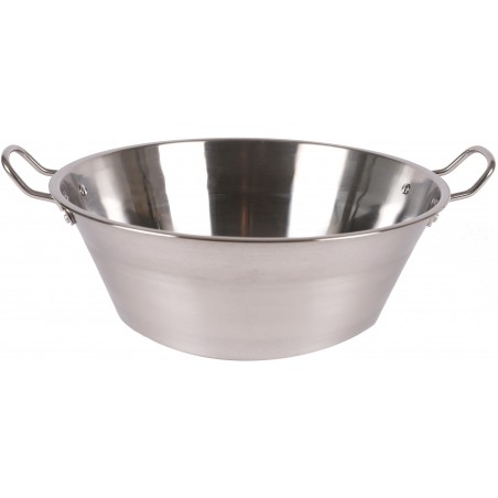 Cette bassine ne possédant pas de « fond rapporté », la chaleur se transmet directement aux aliments en cours de cuisson et se diffuse très rapidement.