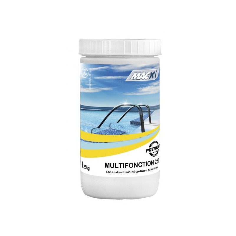 Désinfectant, anti-algues, floculant, tampon pH, clarifiant.