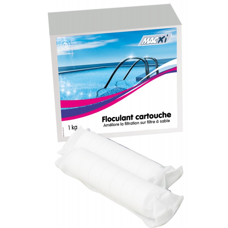 - Piscine familiale, filtration sur sable : Un usage régulier des cartouches de floculant assure une bonne qualité de la filtration, donc une eau saine.