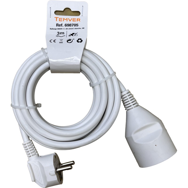 PROLONGATEUR RALLONGE HO5VV-F 3G1.5 BLANC 3M - TEMVER