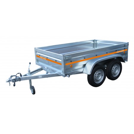 Cette remorque peut bénéficier d'un changement de PTAC à l'achat afin de s’adapter à vos contraintes de capacité de charge ou de permis. Sachez qu’un certificat d’immatriculation est obligatoire pour toute remorque de PTAC > 500 kg. Afin de vous éviter de fastidieuses démarches en préfecture, notre atelier en magasin propose un service de commande et de pose d’immatriculation. Des frais supplémentaires seront à ajouter en cas de changement de PTAC. PTAC 500 kg. Caisse basculante (sauf double-essieu).Timon en V. Ridelles rabattables AV et AR. Roues165/70xR13. Chassis soudé galvanisé à chaud. Possibilité de changement de PTAC 600/650/750 kg