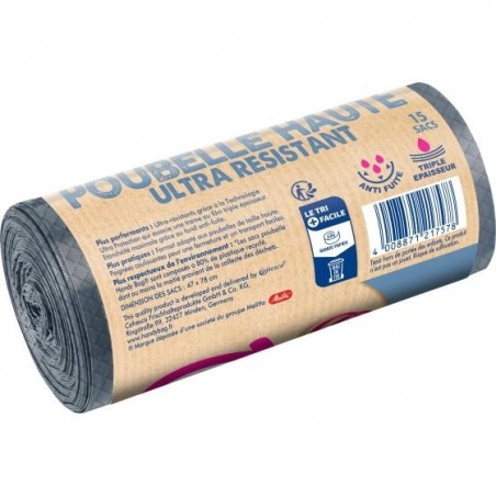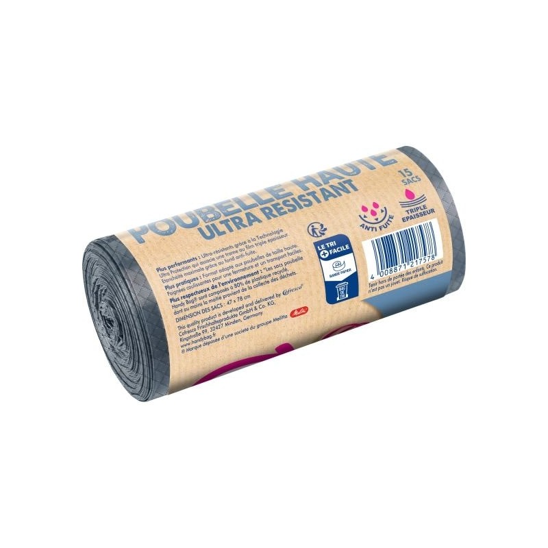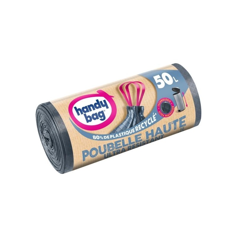 Handy Bag® : il fallait y penser ! Le sac à poignées coulissantes Poubelle Haute est idéal pour les poubelles de taille haute. Avec son film triple épaisseur et son fond antifuite, ce sac vous garantira une étanchéité maximale.