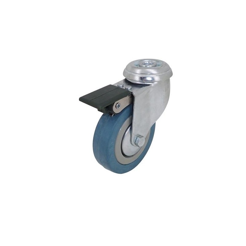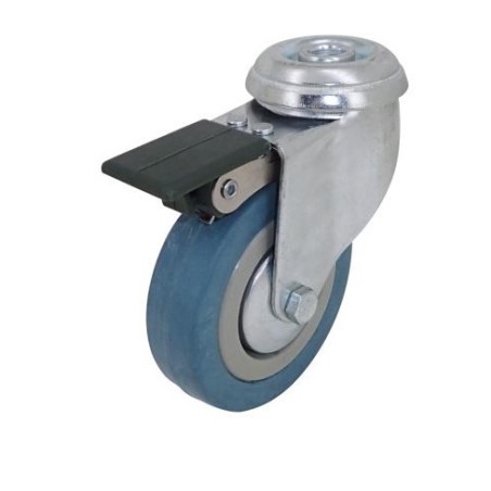 Roulette pivotante à œil à frein en caoutchouc gris diamètre 80mm.
