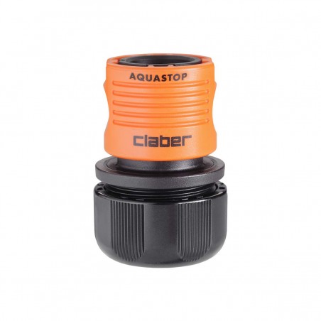 Raccord automatique pour tuyaux Ø 19 mm. Avec aquastop à brancher au bout du tuyau. Le jet est interrompu par débranchement de la pièce mâle.
