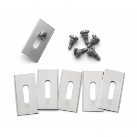 Contient 6 lames et 6 vis de rechange. Traitement thermique en acier rapide supérieur du tranchant de la lame. Très résistante à l'abrasion.