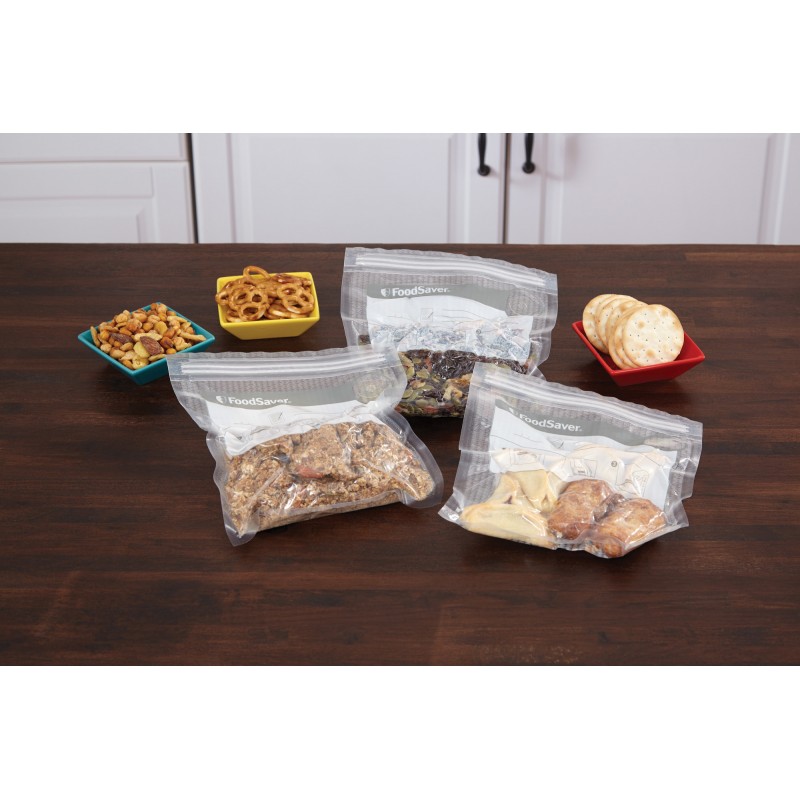 Destinés aux familles actives, les sacs de mise sous vide avec fermeture zip à glissière FoodSaver® vous permettent de réduire le gaspillage alimentaire et de servir des repas frais et délicieux à votre famille chaque jour. Spécialement conçus pour une utilisation avec la Machine Fraîcheur, ils sont idéals pour conserver et emporter toutes sortes d’aliments frais et de repas consommés au quotidien.