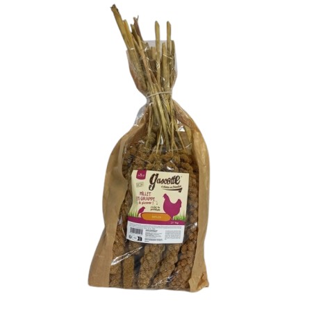 Gasco vous propose d'offrir à vos poules et oiseaux , du millet en grappe. Riche en protéines, cet aliment favorise notamment une ponte régulière et des œufs de qualité. De plus, il s'agit d'un super stimulant. Ces grappes diminueront le stress, et le picage entre animaux.