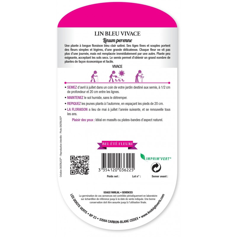 Une plante à longue floraison bleu clair satiné. Ses tiges fines et souples portent des fleurs simples et légères, d’une grande délicatesse. Chaque fleur ne vit pas plus d’une journée, mais est remplacée immédiatement par une autre. Plante peu exigeante, acceptant les sols secs. Le semis permet d’obtenir un grand nombre de plantes de façon économique et facile.