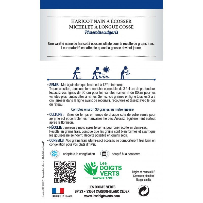 - Une variété naine de haricot à écosser, idéale pour la récolte de grains frais.