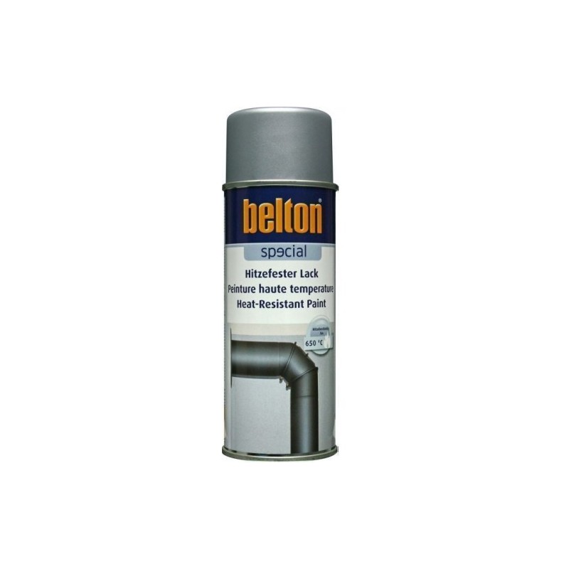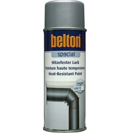 Bombe de Peinture aérosol Belton hautes températures. Conçue pour résister à des températures jusqu'à 650°C. Idéal pour la mise en peinture d'éléments soumis à fortes températures comme les conduits de poêles et chaudières, inserts et cheminées ou pots d'échappement de véhicules.