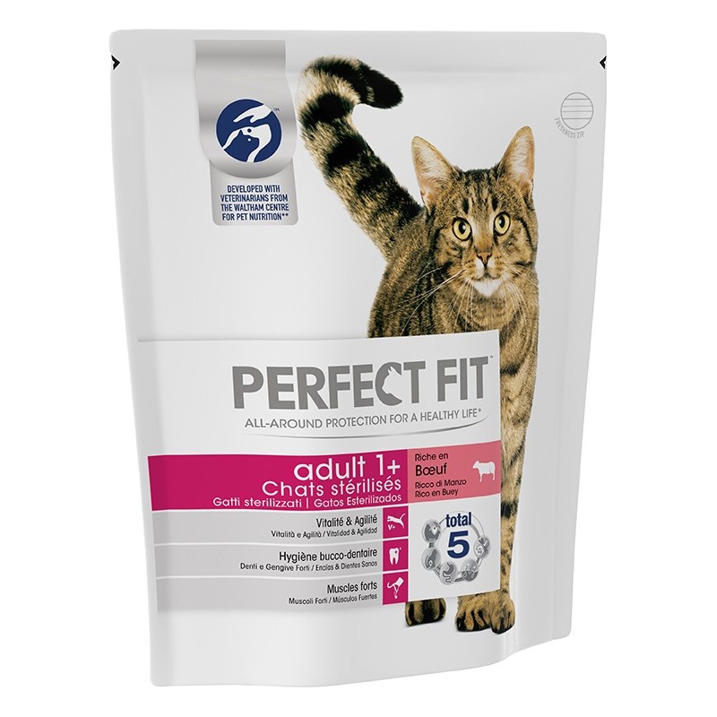 CROQUETTES CHAT PERFECT FIT 1.4 KG STERILISE BOEUF POUR CHAT ADULTE STÉRILISÉ. RICHE EN BOEUF. UNE NUTRITION COMPLÈTE POUR UNE VIE EN BONNE SANTÉ.