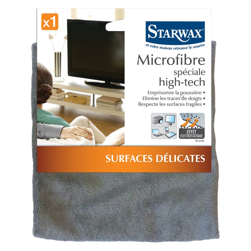 La Microfibre spéciale high-tech* est spécialement adaptée aux écrans plats, écrans d’ordinateur, tablettes tactiles, téléphones, objectifs d’appareils photos… Elle dépoussière et élimine les traces de doigts sans rayer. Très douce, elle est idéale pour les surfaces délicates. La microfibre se lave à 60°C.