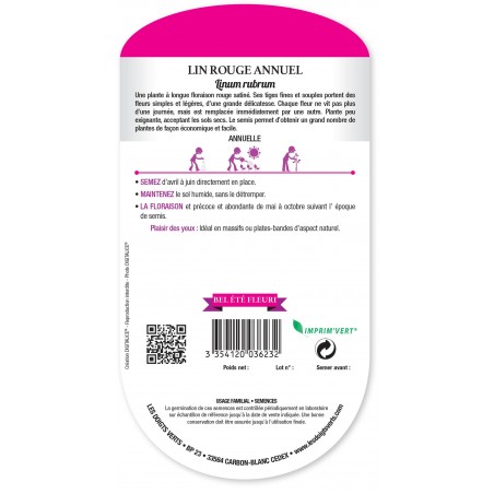 Une plante à longue floraison rouge satiné. Ses tiges fines et souples portent des fleurs simples et légères, d’une grande délicatesse. Chaque fleur ne vit pas plus d’une journée, mais est remplacée immédiatement par une autre. Plante peu exigeante, acceptant les sols secs. Le semis permet d’obtenir un grand nombre de plantes de façon économique et facile.