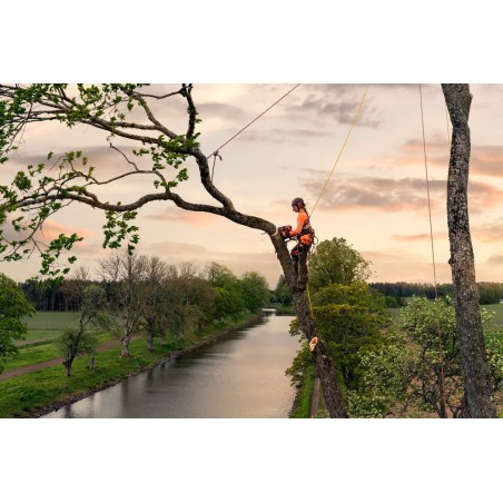 La T540 XP® Mark III de Husqvarna est une tronçonneuse à essence avec poignée supérieure et un rapport puissance/poids impressionnant. Elle est idéale pour les arboriculteurs et les équipes d'élagage professionnelles qui recherchent une tronçonneuse d'élagage fiable et puissante, facile à manipuler et remplissant parfaitement sa tâche. Le moteur à essence de la classe 40 cm3, associé à la chaîne SP21G, assure une excellente performance de coupe avec une accélération rapide pour un travail sûr et efficace dans la couronne de l'arbre.