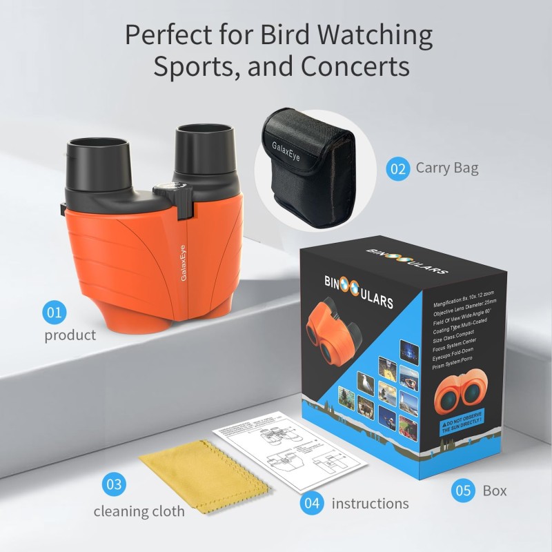 Jumelles pour adultes et enfants. Jumelles compactes GalaxEye 12x25 avec haute résolution, large champ de vision et mise au point facile.