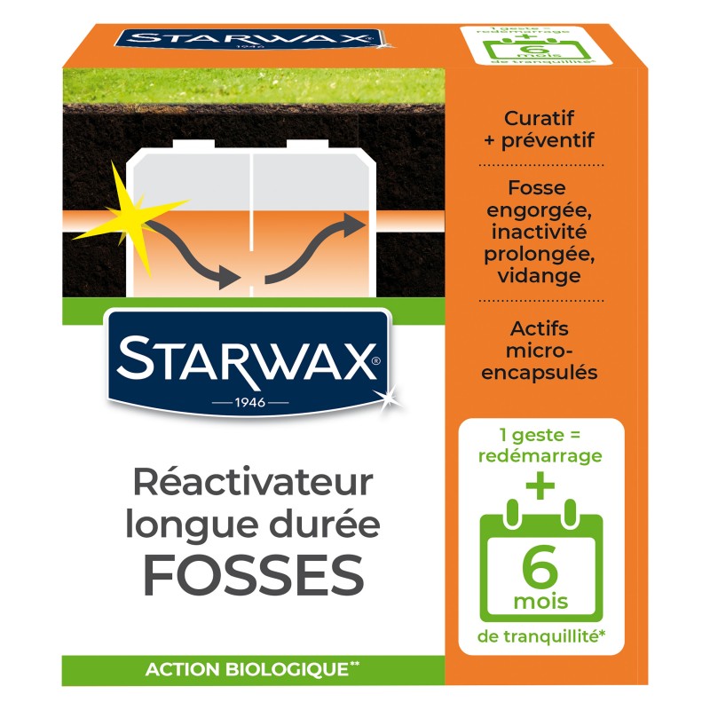 - S’utilise pour : Réactiver une fosse engorgée ou laissée inactive et en assurer l’entretien continu pour 6 mois.