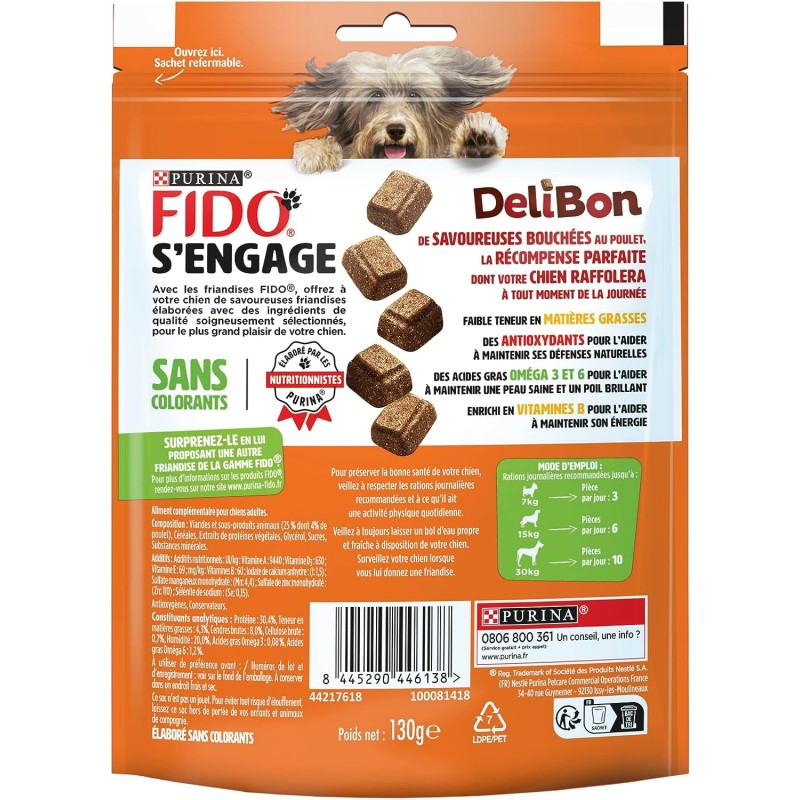 FIDO® DeliBon de savoureuses bouchées au poulet, la récompense parfaite dont votre chien raffolera à tout moment de la journée. FIDO® S’ENGAGE. Avec les friandises FIDO®, offrez à votre chien de savoureuses friandises élaborées avec des ingrédients de qualité soigneusement sélectionnés pour le plus grand plaisir de votre chien.