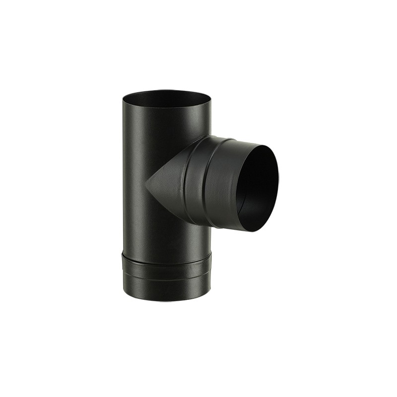 Té avec tampon émaillé pour le raccordement arrière sur le poêle.