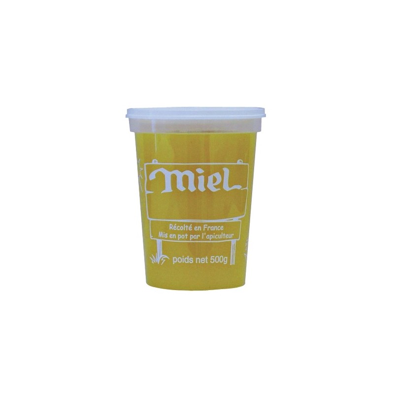 Ce pot en plastique PEP (fermeture ordinaire) sera idéal pour conditionner votre miel. En plus, il est vendu avec son couvercle ! Ses couleurs et l'inscription "MIEL" sur le devant du pot sont parfait pour mettre en valeur votre miel.