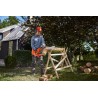 La tronçonneuse à batterie Husqvarna 240i a été développée pour offrir une puissance élevée et une grande facilité d'utilisation. Sa conception compacte et légère permet de réaliser les travaux confortablement et de manière ergonomique. Lors de la coupe de bois de chauffage ou de l'abattage d'arbres dans le jardin, la technologie Max Torque garantit une puissance fiable et réduit le risque de blocage de la chaîne dans le bois. L'utilisateur bénéficie également d'une expérience améliorée grâce au clavier convivial avec bouton ON/OFF et au corps de tronçonneuse bien équilibré. La dépose de la batterie est facilitée par son positionnement horizontal à travers la machine qui réduit le risque de pénétration de saletés et de copeaux dans le compartiment. La 240i fait partie du système flexible BLi-X 36 V d'Husqvarna, qui permet d'utiliser la même batterie sur plusieurs outils. Disponible en option avec tension de la chaîne sans outil.