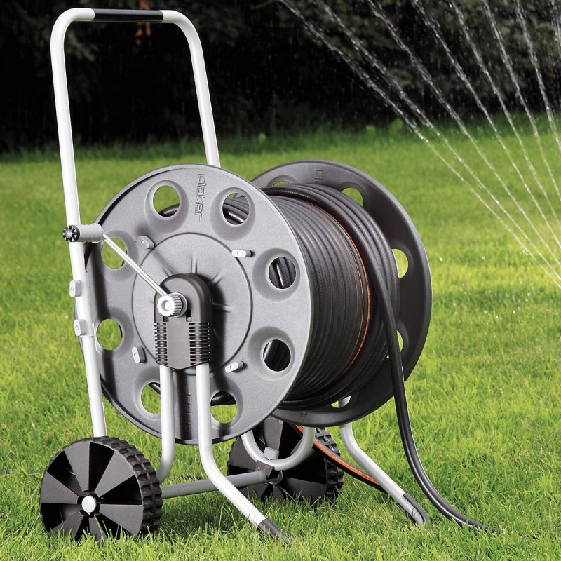 Entièrement métallique, ce chariot dévidoir garantit le bon glissement du tambour, grâce au Silent Block. Capacité idéale même pour des jardins de grandes dimensions.